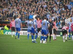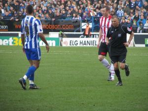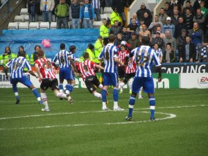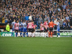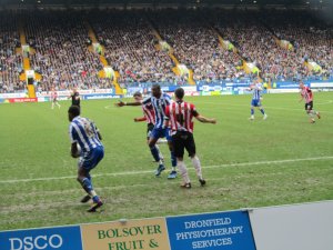 The atmosphere inside the ground was electric with a sell out crowd of 36,364 watching the action, 4,700 of who were supporting the Blades. Both sets of fans were in good voice as the game got underway but the early exchanges were rather scrappy with neither side grasping control of the game.