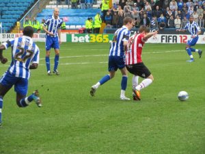 The first half was fairly even and rather scrappy in parts. Wednesday’s new loan signing Michail Antonio fired the ball across the United box but Ryan Lowe just couldn’t reach it to convert the chance, while a half-hearted effort from 30 yards out by Ched Evans flew well wide of the post. The first 45 minutes were goalless and it was all to play for in the second period.