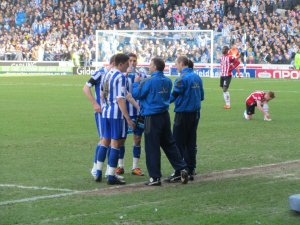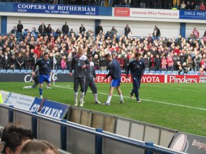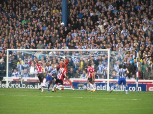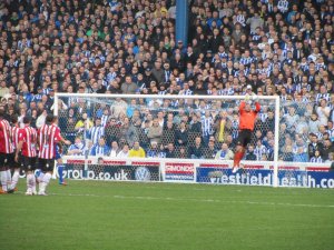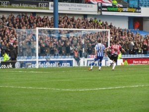 The first chance fell to Chris O’Grady whose header flew over the crossbar and in to the Kop. United then came just inches away from opening the scoring when Lee Williamson’s free kick hit the underside of the bar and bounced down on to the line before Owls goalkeeper Stephen Bywater smothered the ball and the scores remained level.