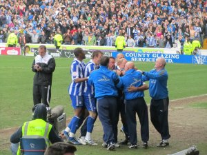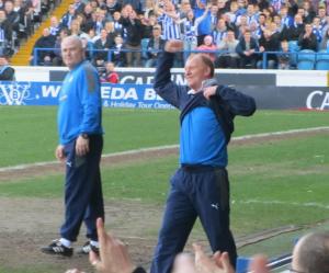 Gary Megson celebrates his first Steel City derby win