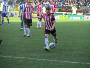 On the 73rd minute pressure paid off when Lewis Buxton broke down the wing and his cross met the head of O’Grady whose header beat Steve Simonsen and flew in to the net to put the home side ahead in the Steel City derby.