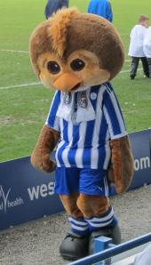 A cuddly toy pig dressed in the Sheffield United strip sits on top of the Owls flag!