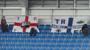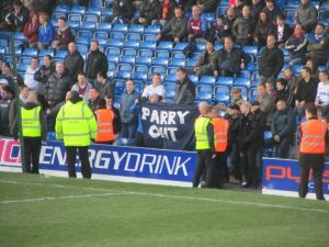 With another defeat staring them in the face, some of the Rovers fans began angry and a few chants were aimed at their boss Les Parry along with a flag showing the message “Parry Out”.