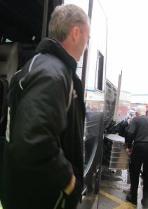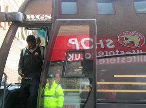 Chesterfield manager John Sheridan gets off the coach