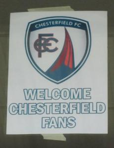 A sign welcome Chesterfield fans