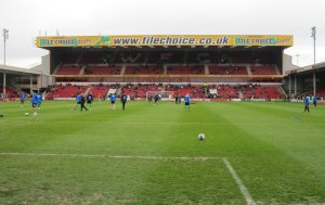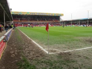 The new ground is quite nice with one very impressive stand behind the goal. However, it does feel slightly as if the stadium has been placed amongst an industrial estate and from the outside parts of it look quite bland. Despite this, I did like certain parts including the large “Banks’s Stadium” sign and the largest stand could easily grace any Championship stadium.