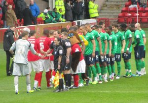 The players shake hands at full time