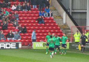 The Walsall players celebrate regain the lead at 3-2