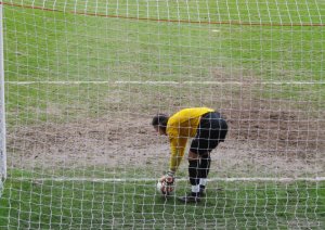 Tommy Lee picks the ball up out of the net