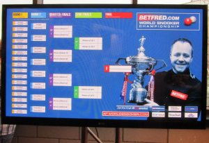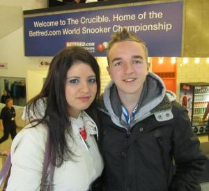 We wandered around for a while, going in to the Winter Gardens to have a look at the set up, which is the same as it has been for the past couple of years with the BBC studio and a table behind where members of the public can try their hand at various challenges. We also chatted to some of the Crucible regulars including Chris (aka The Statman) and Kellie among others before heading in to the venue for the first time this year.
