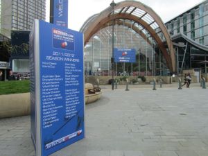 As we arrived, the game between Martin Gould and David Gilbert was reaching a conclusion and so we decided to watch the end of the match on the big screen in Tudor Square. Gilbert had led 9-5, but Gould had made a comeback winning the next 3 to make the scores 9-8. However, the qualifier managed to hold himself together in the 18th frame to knock in a half century break and book his place in the second round for the first ever time.