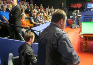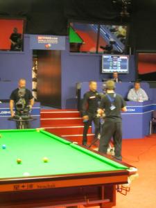 On the other table, Mark Selby was playing Barry Hawkins and while I couldn’t see the table from my seat, I kept an eye on the score. Hawkins started well taking a 3-1 lead in to the interval, and he continued to play well as he pulled away to take a 6-3 advantage in to the second session against the former World runner up. Selby will certainly have his work cut out if he is to avoid becoming another seed to lose in the first round.