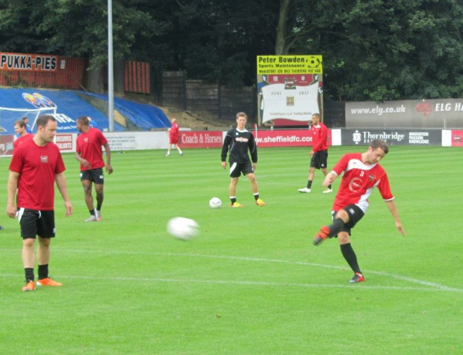 Charlie Weir shoots at goal in the warm up