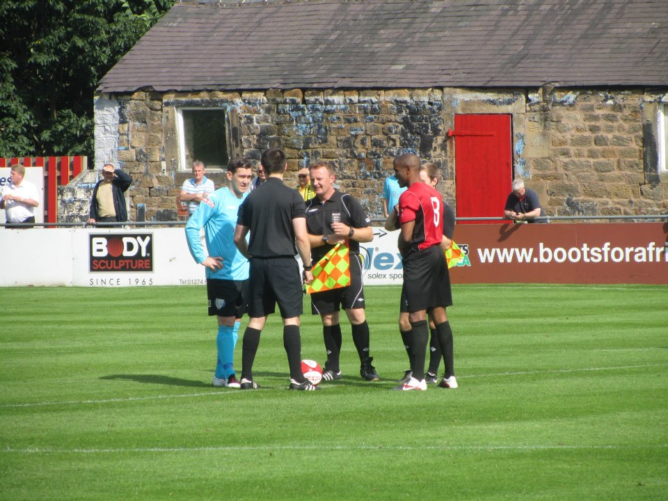 SFCvKLT26 ← Previous Next → The two captains, Richard Bunting and Anton Foster with the officials before kick off