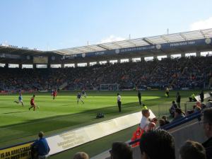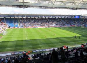 The ground is typical of many modern stadiums, such as Pride Park, with a single tiered stand all the way around it. Our first view of the stadium was at pitch level and I was very impressed it. Each stand has different words printed on the seats, which gives them a bit of identity and the view of the action was excellent. The atmosphere was also very good with the home supporters singing throughout and overall, the King Power Stadium is a great place to watch football.