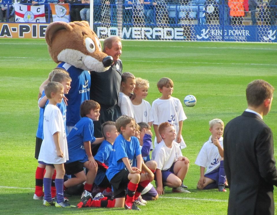 LeicesterCity74 ← Previous Next → Filbert the Fox and Alan Birchenall pose for a photograph with some young Leicester fans