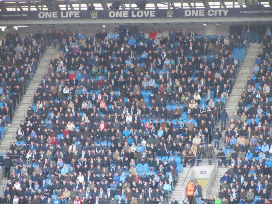 City supporters watch the early stages of the match