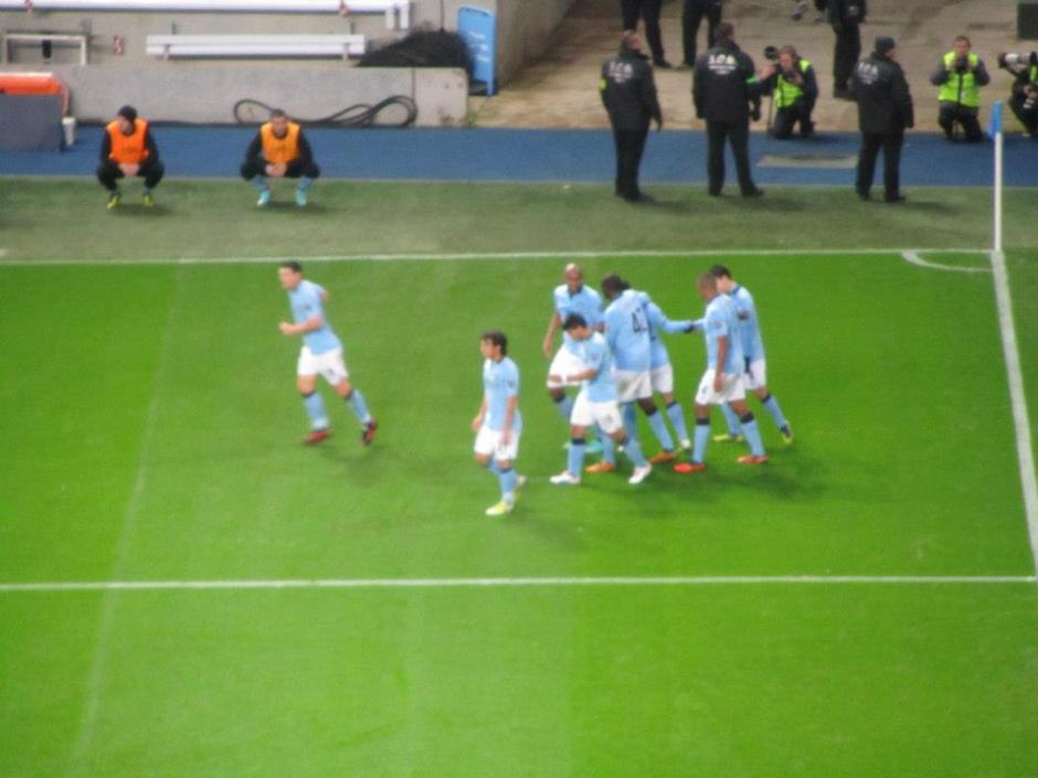 The players celebrate making it 3-0