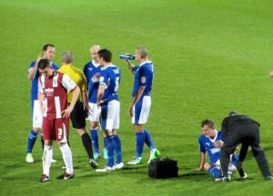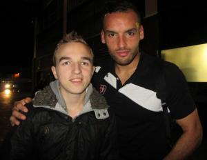 Before heading home at the end of an enjoyable evening, I had a photograph with Robins goalscorer Kaid Mohamed as he made his way on to the team coach.
