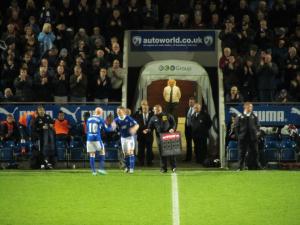 Long serving Spireite Mark Allott comes on to the pitch at half time to say farewell