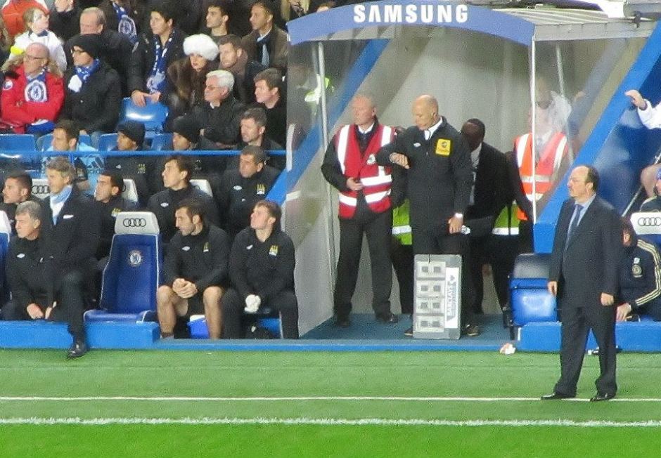 Mancini and Benitez stand on the touchline