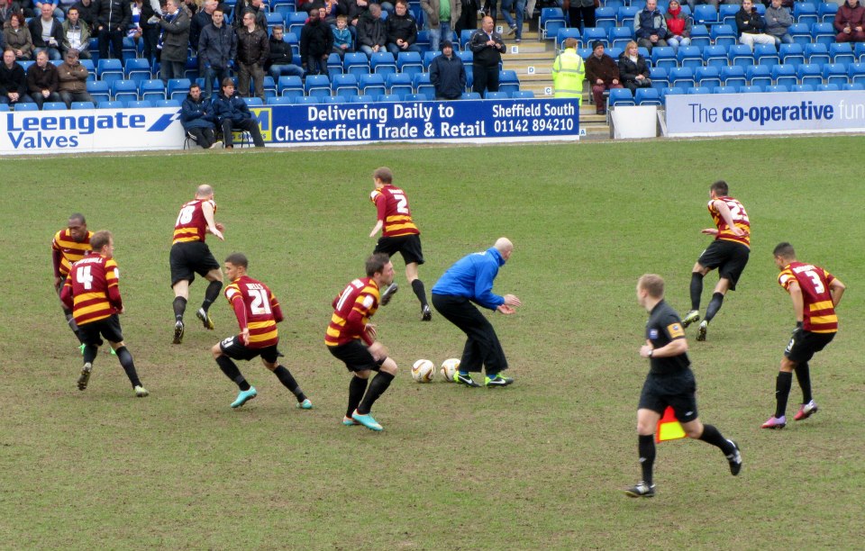 Chesterfield started the stronger as they attacked towards the noisy away end. They came agonisingly close to taking the lead early on when a goalmouth scramble led to the ball being cleared off the line by Bantams captain Gary Jones.