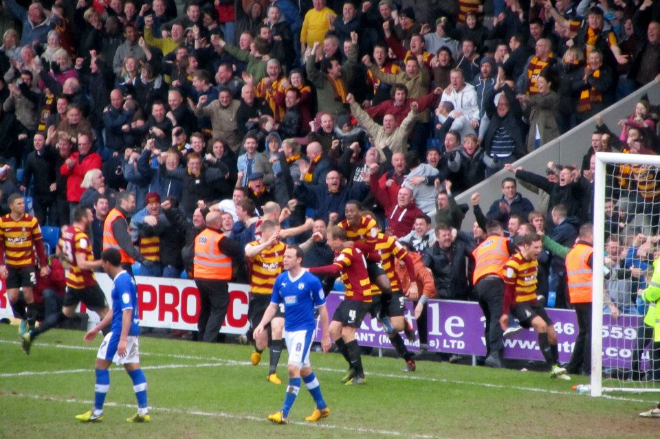 But just 9 minutes later and the Bantams were ahead again courtesy of a Ricky Ravenhill effort. A corner was punched away by Lee but it fell straight to Ravenhill, who fired a low shot past a group of players and into the net to send the away end crazy.