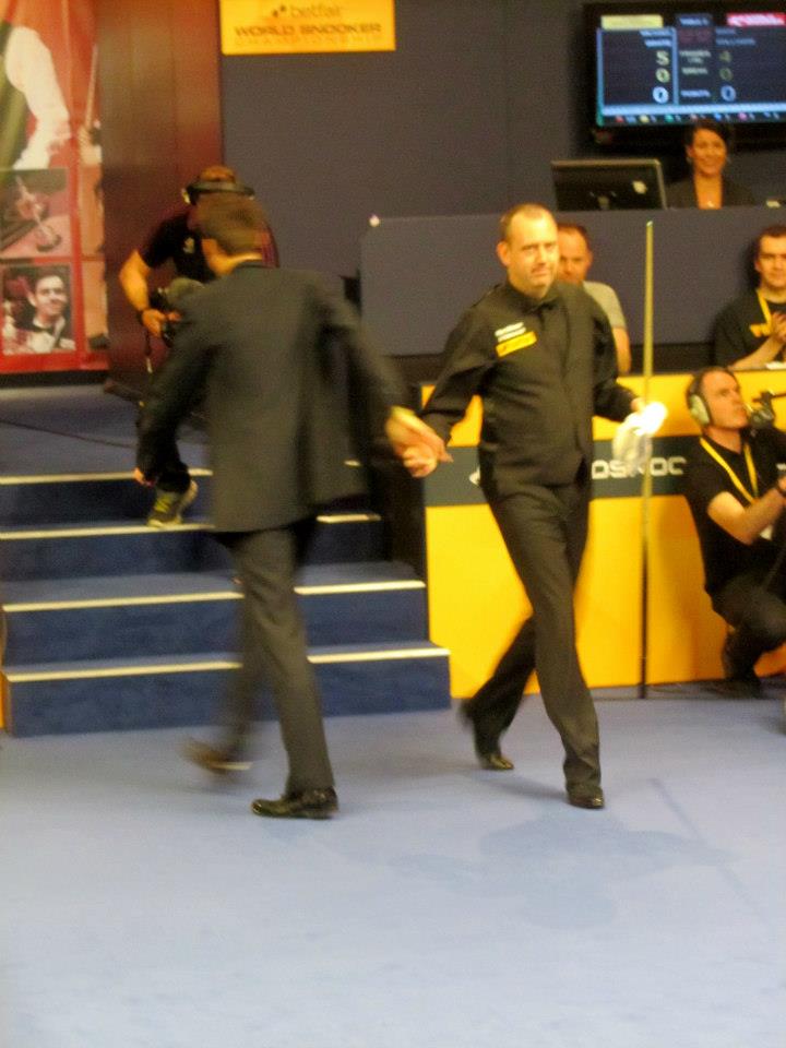 It was a lovely sunny day in Sheffield, as is often the case on the opening weekend of the Snooker, and we some time wandering around Tudor Square and the Winter Gardens to soak up the unique atmosphere of the World Snooker. During this time we bumped in to reigning World Open champion Mark Allen, who is always very friendly, shaking my hand and being more than happy to have a photo. I also had photos with former World Champion Ken Doherty and Crucible debutant Michael White ahead of his match against Mark Williams before heading in to the venue and taking our seats on row B.