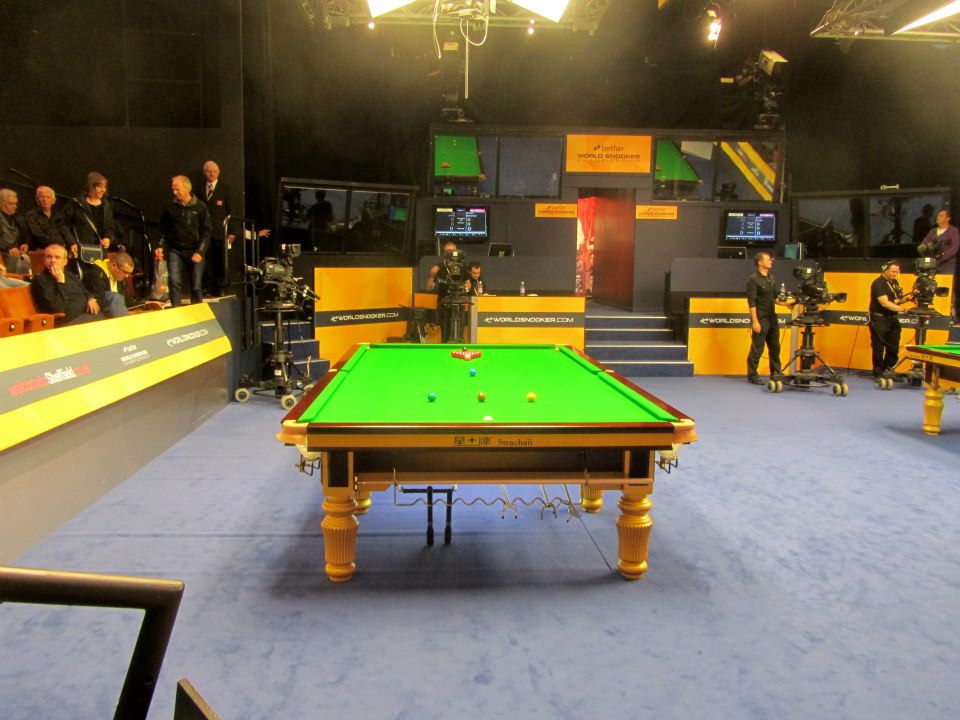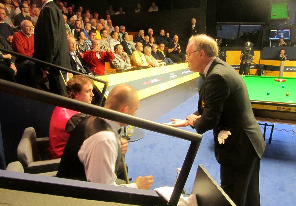 Me and my Dad had front row seats for this clash and we arrived around 45 minutes before the action began, wandering around chatting to a few of the regulars as well as watching Martin Gould, who had been defeated by Shaun Murphy in the first round, have a few frames in the cuezone.