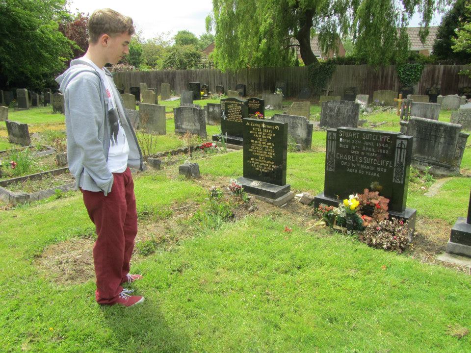 Stuart Fergusson Victor Sutcliffe, the original bassist of the Beatles, died on the 10th April 1962. After quitting the Beatles, choosing instead to stay in Hamburg with his girlfriend Astrid Kirchherr and concentrate on his art, Sutcliffe began experiencing severe headaches and collapsed on 10th April 1962, dying in the ambulance on the way to the hospital at the tragically young age of 21 – with the cause of death later revealed as an aneurysm. The funeral took place at St Gabriel Church in Liverpool and his final resting place is the Huyton Parish Cemetery. Sutcliffe’s father was unable to attend the funeral due to being in South America and neither Astrid Kirchherr nor John Lennon – who was devastated by the loss of his friend – attended. These photos show the gravesite, with Stuart buried alongside his father Charles, who passed away 18th March 1966 – outliving his son by just under four years.