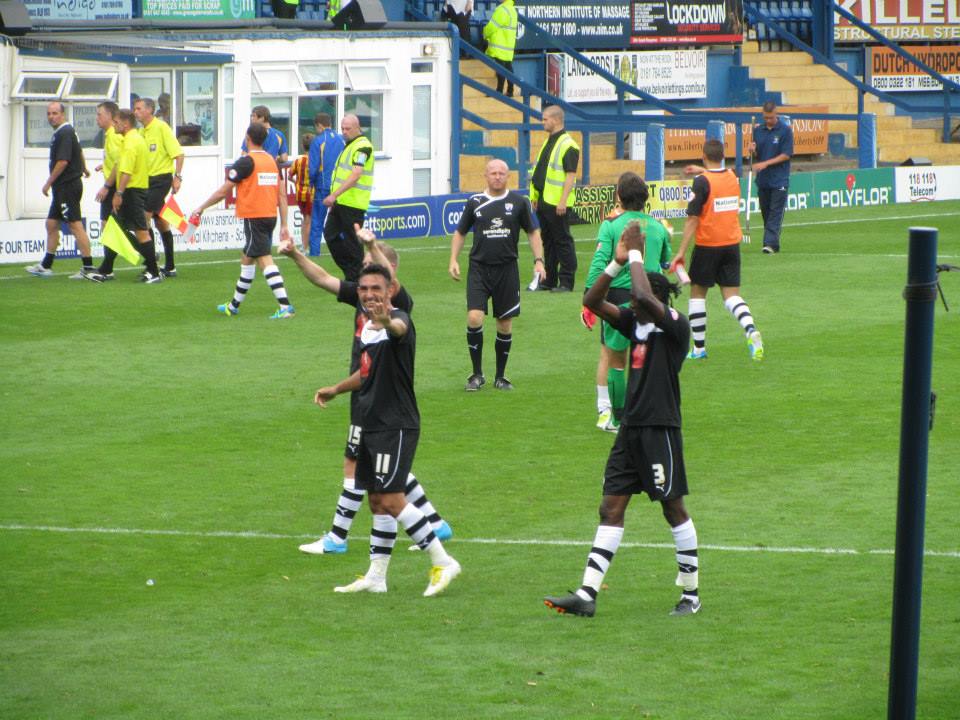 After being on the back foot and struggling to get going for the majority of the first half, the Spireites came out looking like a different side in the second period and a superb solo goal from Jay O’Shea put the Spireites ahead on the 50th minute. The Irishman went past defender Gareth Roberts before curling the ball into the opposite corner, much to the delight of the travelling supporters and players alike.