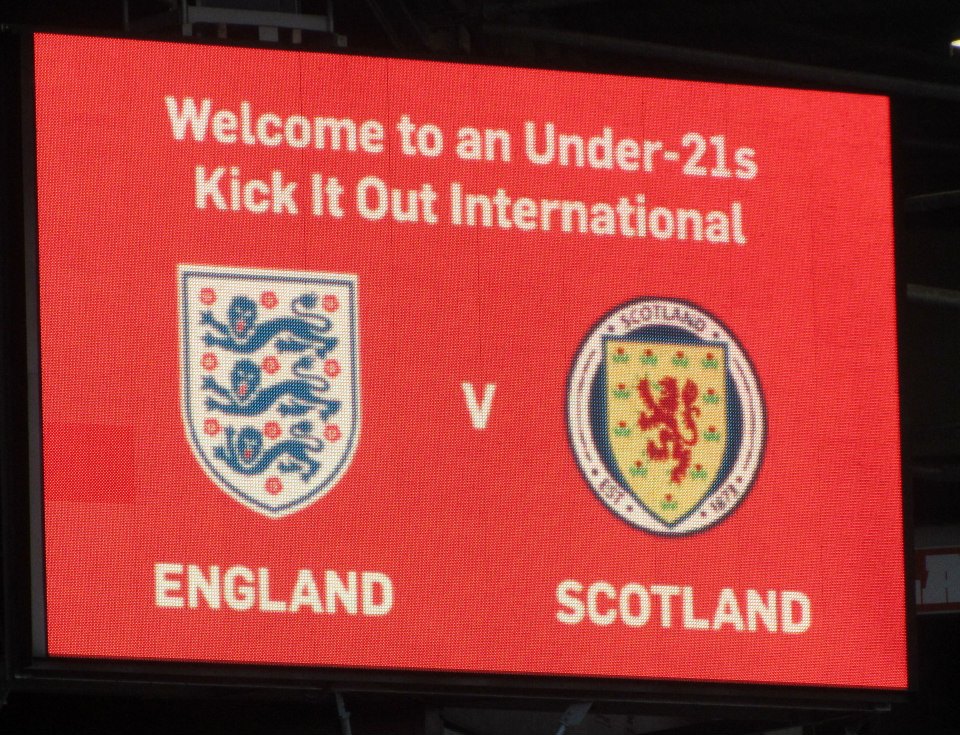 The players made their way on to the pitch and lined up for the national anthems, both of which were respectfully acknowledged by the two sets of supporters. The England starting eleven boasted three players who had played for England’s full side – Jack Butland, Jonjo Shelvey and Raheem Stering while the Scotland team had no players with international first team experience.
