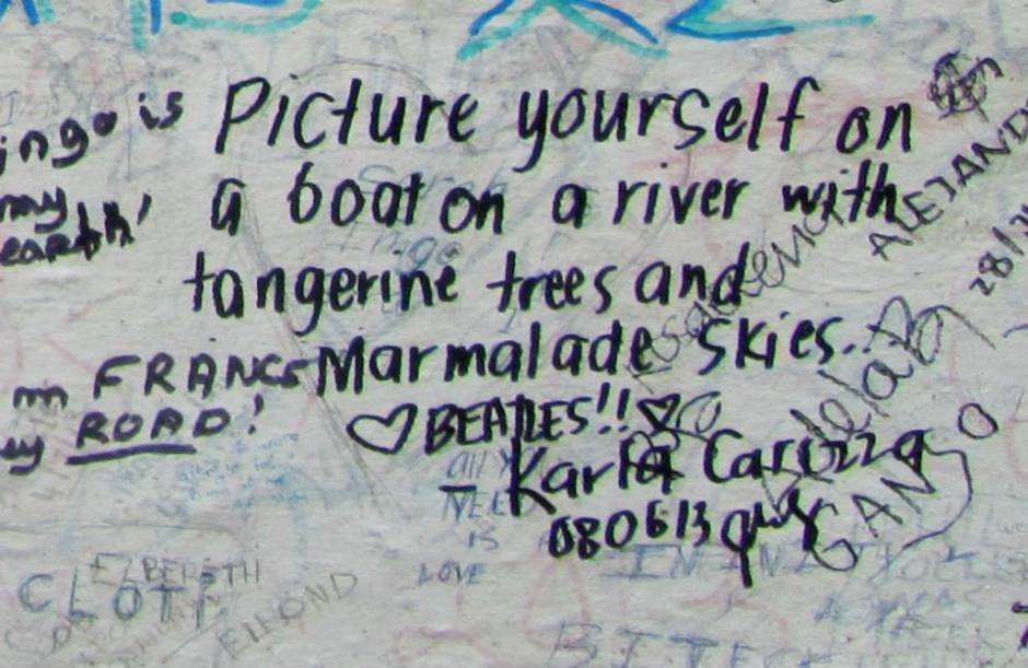 One of the many Beatles lyrics quoted on the wall