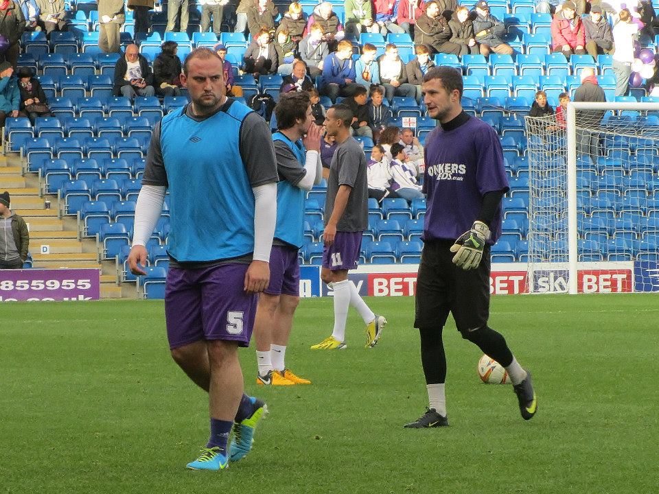 Prior to the game, I got a picture with Chesterfield boss Paul Cook as he watched his side warm up. Amazingly, this was my first photo with him despite the fact he has been in charge of the club for over a year now! Showing full respect to the opposition, Cook named a very strong line up which saw just three changes from last week’s game against Scunthorpe. Sam Hird, Eoin Doyle and Gary McSheffrey replaced Ritchie Humphreys, Jamie Devitt and Jay O’Shea. Daventry, managed by Darran Foster, had a big side with plenty of physical players. Their star man was centre back and captain Liam Dolman, who previously played 45 times for Northampton Town.