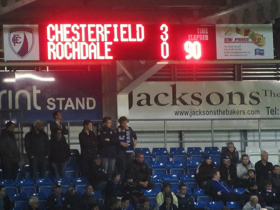 On Tuesday 12th November 2013, I went to the Proact Stadium to watch Chesterfield play Rochdale in the Johnstone’s Paint Trophy Area Quarter Final.