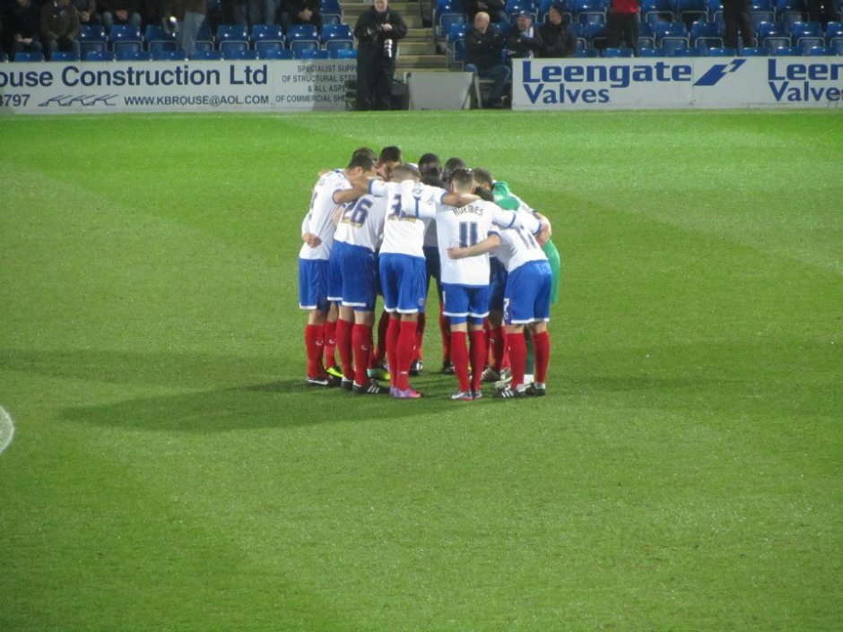 Pre-match huddle for Pompey