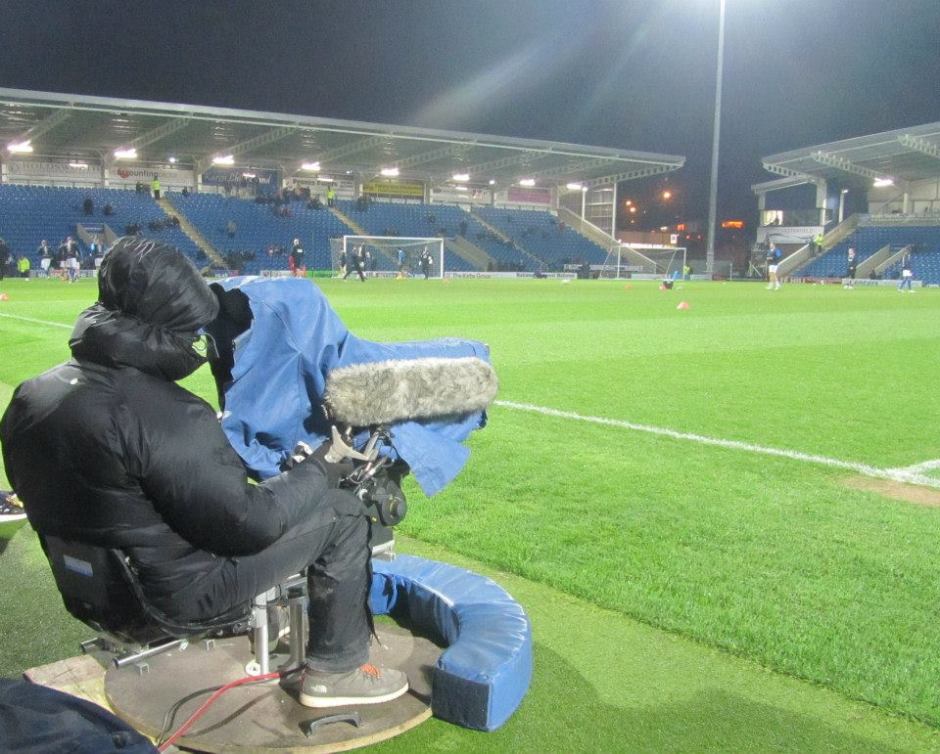 A cameraman at pitchside