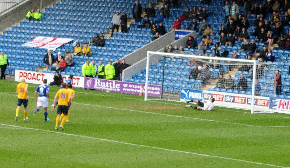 It was a bright day in Derbyshire and the game got off to a fast start. Just two minutes in, Chesterfield ‘keeper Tommy Lee was forced into action as he made an athletic diving save from Dave Hunt’s first time volley. The home side hit back quickly when Gary Roberts’ free kick flew just inches over the crossbar.