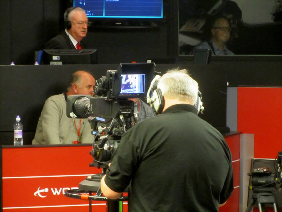 MC Rob Walker did his usual job of getting the crowd excited ahead of the action’s commencement. Hazel Irvine and seven-times World Champion Stephen Hendry were inside the venue presenting the evening’s action to the world and Hendry even tweeted a photo of himself at table-side with me in the background!