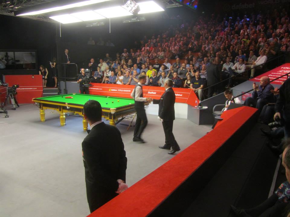 It was a nice day in Sheffield and before the session, me and my Dad caught up with some of the usual visitors to the Crucible! While Snooker is such a global sport these days, you can always guarantee that certain people will be in the audience year after year and this kind of dedication to the sport is fantastic to see. With around 15 minutes to go until the start of the evening session, we headed inside and took our row B seats at the Crucible.