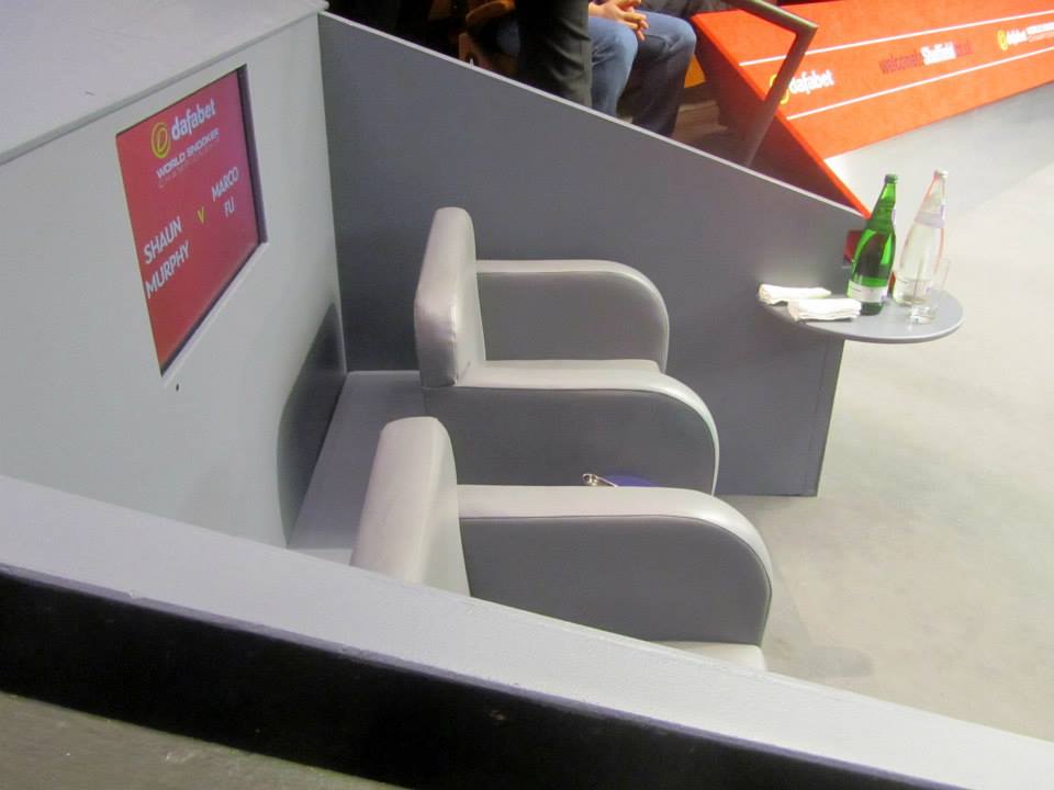 Following the BBC introduction, the four players made their way to centre stage and the action got underway. I was watching the table 1 match between Murphy and Fu, a match that saw the 2005 World Champion holding a 9-7 lead heading into this final session of the best of 25 frames contest.