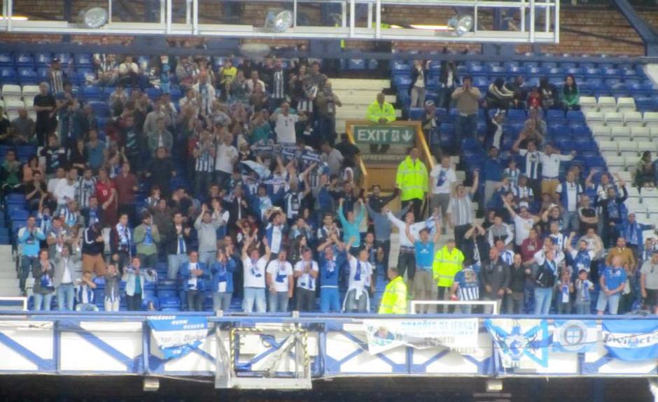 The away supporters cheer