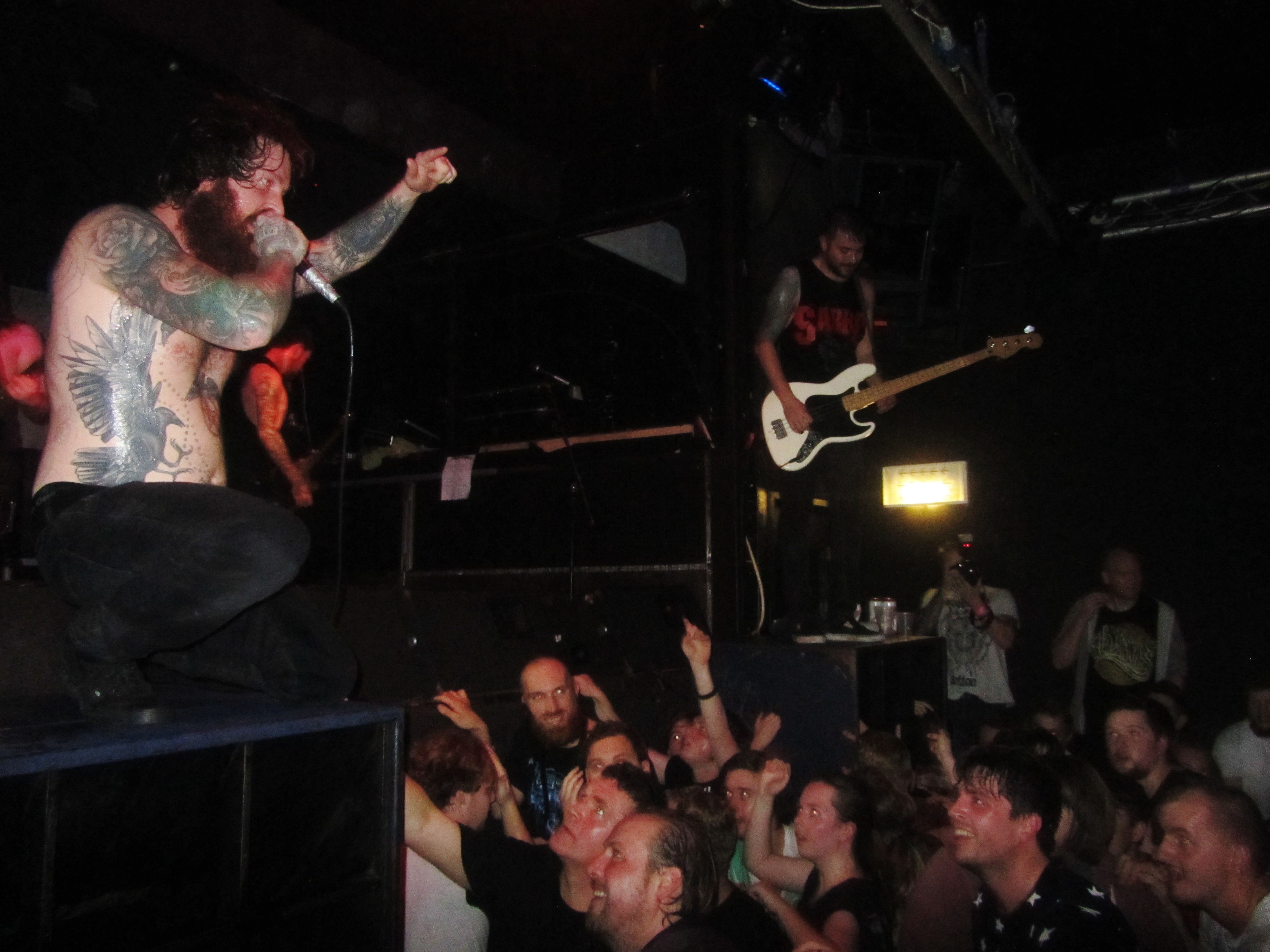 After some excellent and some crazy performances from the supports, it was finally time for the main event – ‘Feed The Rhino’. The brutally powerful sounds of the instruments filled the tightly compacted room. The first scream from vocalist Lee Tobin was then the signal for packed crowd to go mental.