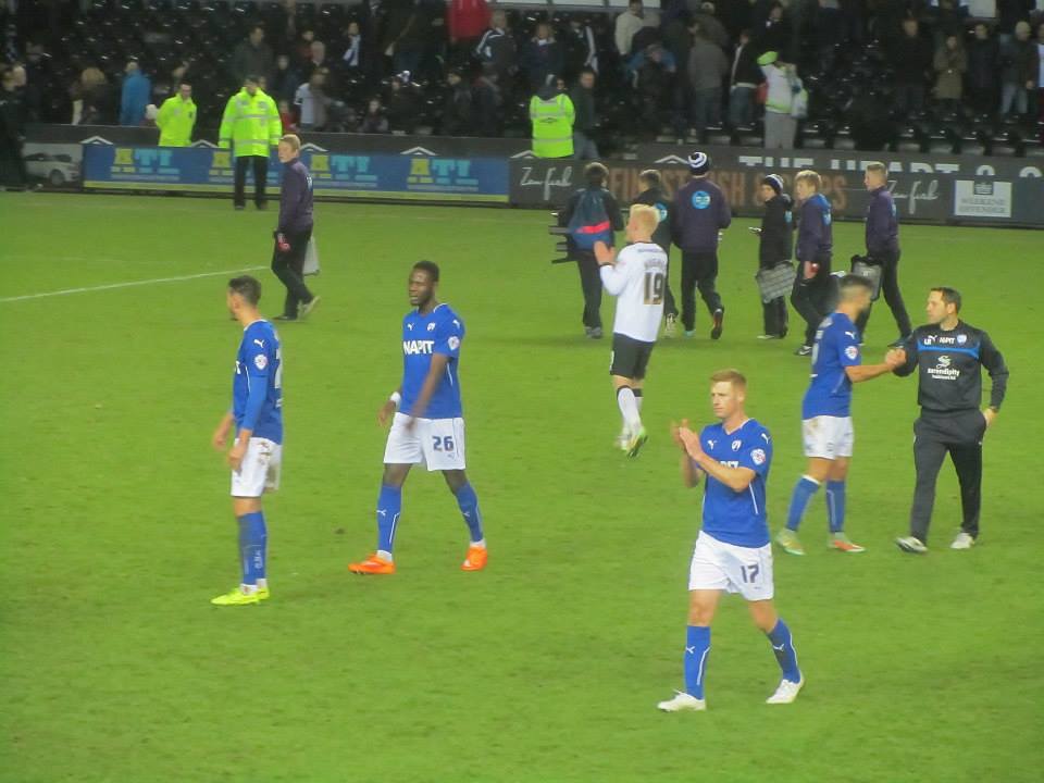 The players applaud the travelling fans