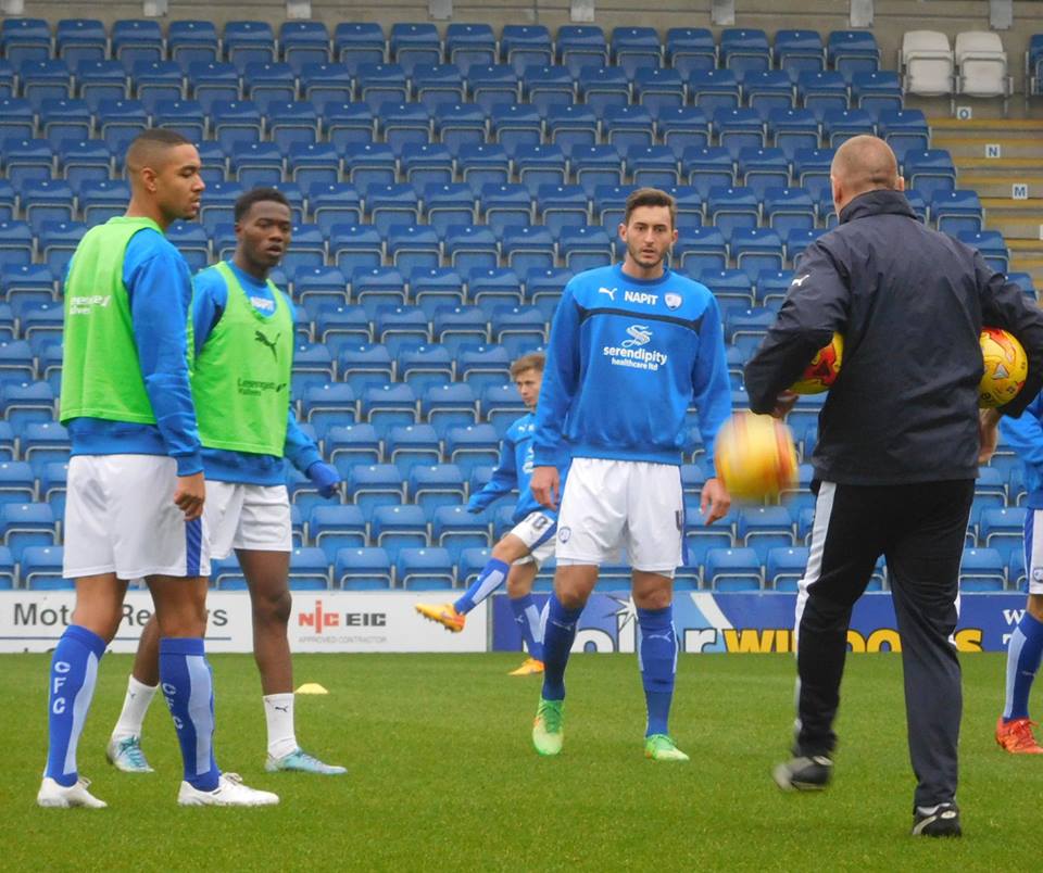 Byron Harrison, Gboly Ariyibi and Ollie Banks warm up